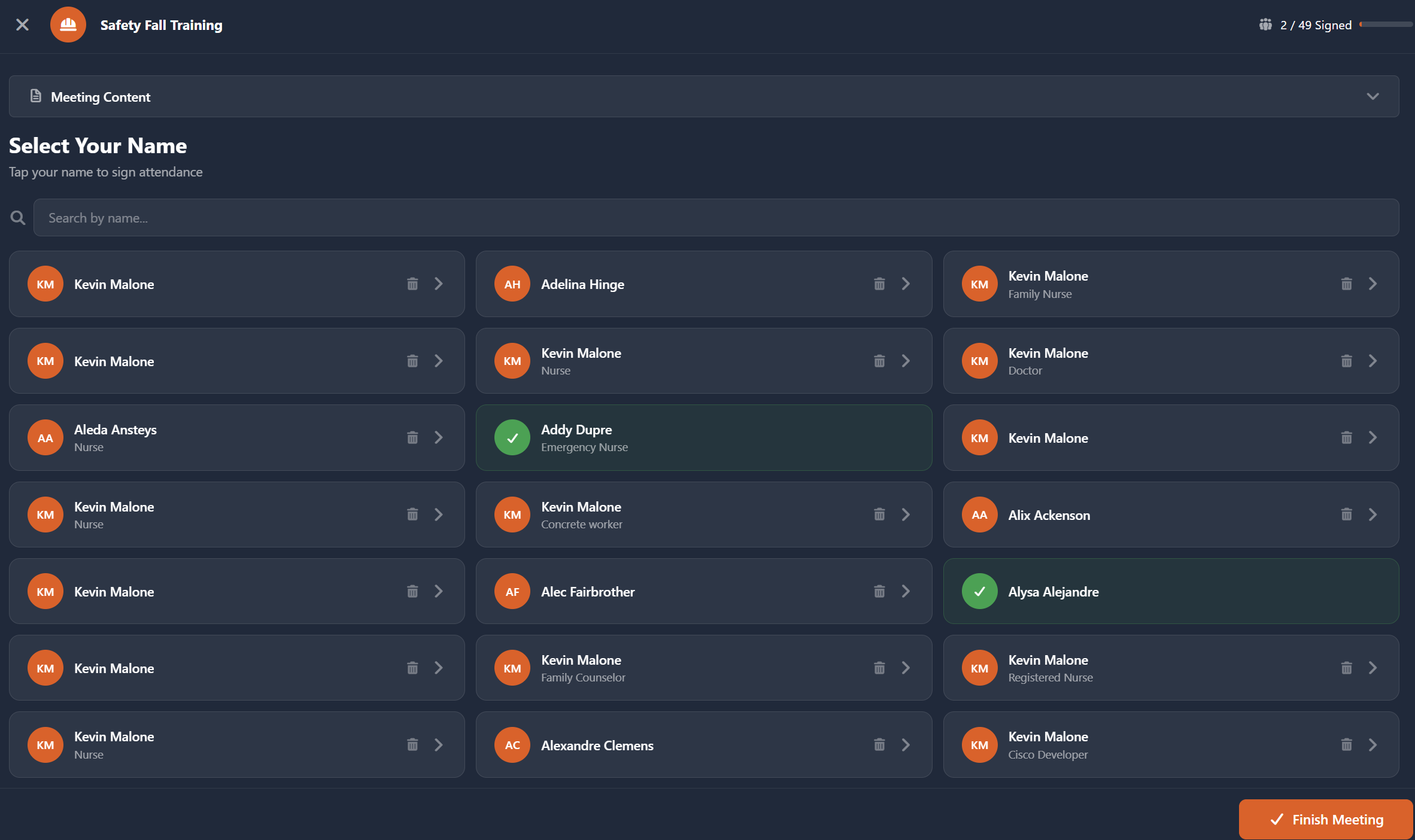 - Each employee selects their name from the attendee list.