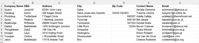 - Once your spreadsheet is uploaded, the Import Tool will display it. Below is an example of the spreadsheet we are using for this tutorial.