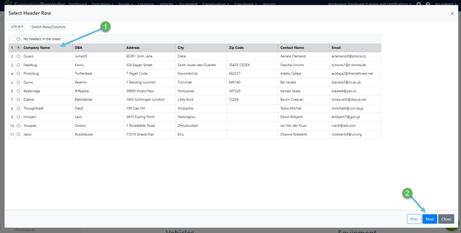 - You'll need to select the heading row of your spreadsheet and then click "Next."