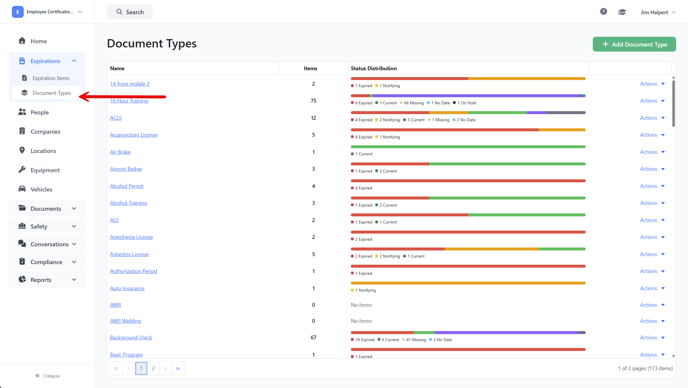After creating the smart document type, the next step is to create an expiration. Click on Expirations on the top menu and then click New Expiration.